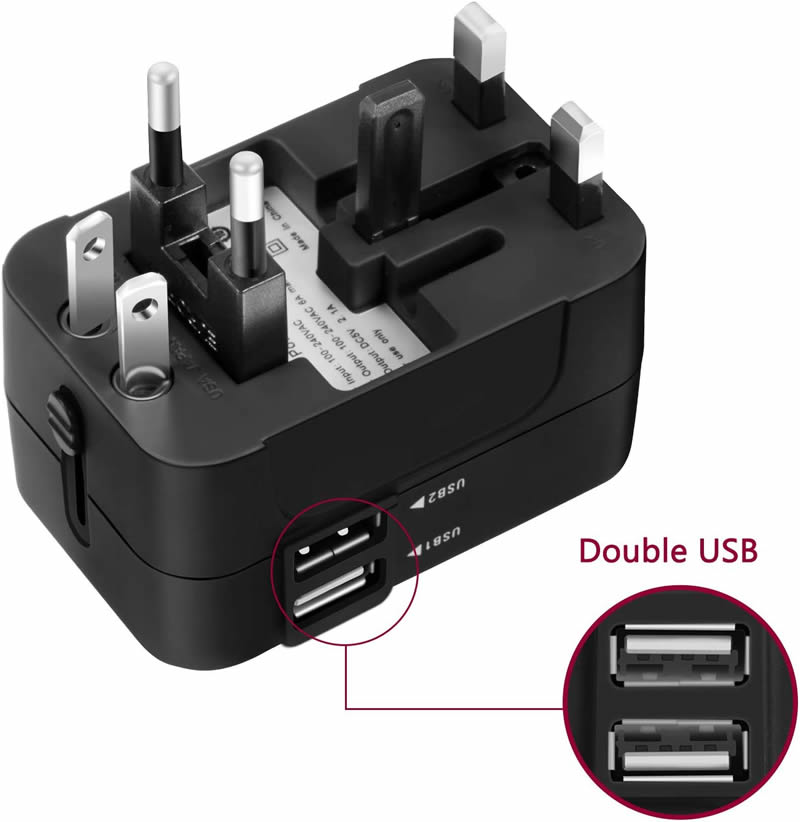 Adattatore da Viaggio Universale, adatto per più di 180 paesi - per prese EU, USA, UK, AUS, con 2 Porte USB
