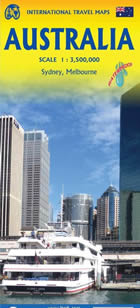 Mappa stradale plastificata dell'Australia con una cartografia facile da consultare ed accurata con una ricca simbologia stradale; con aeroporti, strade principali e secondarie, sentieri, strade panoramiche, spiagge, riserve naturali, mappe del centro delle città principali e l'indice delle località.