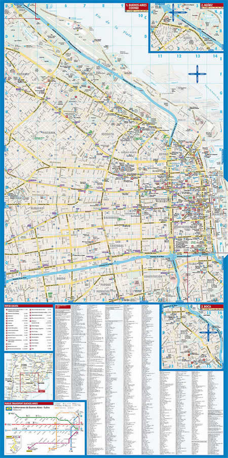 Buenos Aires - mappa della città plastificata, impermeabile, scrivibile e anti-strappo - dettagliata e facile da leggere, con trasporti pubblici, attrazioni e luoghi di interesse - nuova edizione
