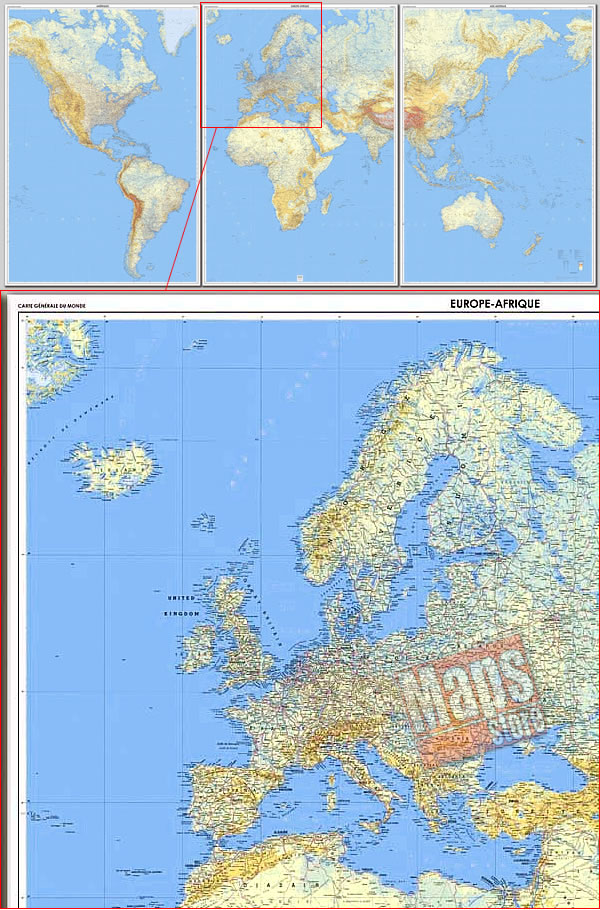 Questo planisfero è un'edizione limitata dell'Istituto Geografico Nazionale Francese, con nomi dei Paesi riportati in lingua originale e francese.