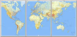 Mappa murale del Mondo fisica-politica, aggiornata e dettagliatissima, si adatta ottimamente per l'arredamento di casa, studio o ufficio. La mappa murale è composta da 3 fogli plastificati di grandi dimensioni (ogni foglio misura 99 x 143 cm), con una dimensione totale di 289 x 143 cm quando i fogli sono assemblati. La cartografia si distingue per la ricchezza dei particolari, con una grafica chiara e precisa, facilmente leggibile.