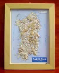 mappa in rilievo Sardegna - mappa in rilievo con cornice in legno - 65 x 80 cm