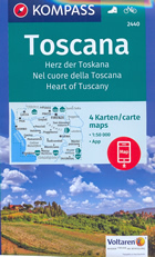 mappa topografica n.2440 - Toscana centrale - con dintorni di Firenze, Pistoia, Siena, Chianti, San Gimignano, Volterra, Montalcino, Monte Amiata, Montepulciano, Colline Metallifere, Pisa, Livorno, Riviera degli Etruschi, Cecina, San Vincenzo, Piombino - set di 4 mappe, compatibili con sistemi GPS - edizione 2021