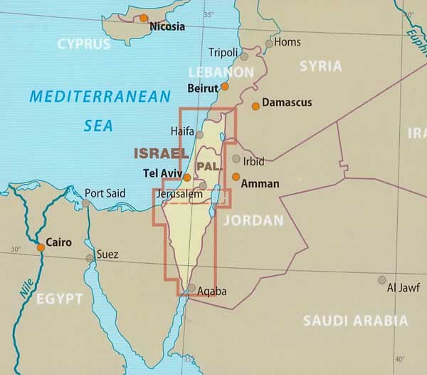 Israele, Palestina - con Tel Aviv, Gerusalemme, Haifa - mappa stradale impermeabile e antistrappo - con indice e distanze