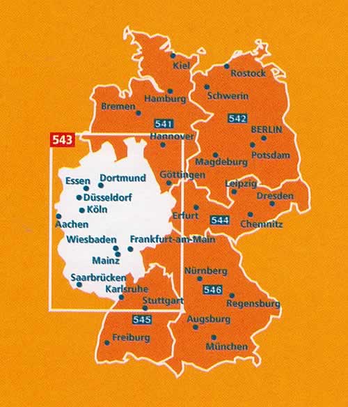 mappa stradale n.543 - Germania Centro-Ovest - con Nordrhein-Westfalen, Hessen, Rheinland-Pfalz, Saarland