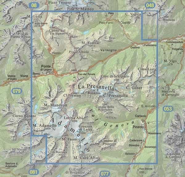 mappa topografica n.052 - Adamello, Presanella, Val di Genova - Alta Val Camonica, Val Vermiglio, Val Genova, Ponte di Legno, Temù, Passo di Gavia, Passo del Tonale, Pinzolo - con reticolo UTM per GPS - impermeabile, antistrappo, plastic-free, eco-friendly - EDIZIONE 2025