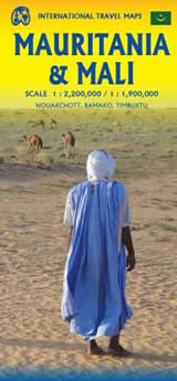 Mappa stradale della Mauritania (in scala 1 : 2.200.000) e del Mali (in scala 1 : 1.900.000), molto dettagliata ed aggiornata con l'indice delle località, tabella delle distanze chilometriche tra le principali città del Mali e mappe del centro città di Nouakchott, Tombouctou (Timbuktu) e Bamako.