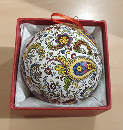 Palla di Natale in vetro (diametro 8 cm), con cordino e fornita in una elegante scatola regalo; palla di Natale Made in Italy.