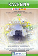 Mappa stradale della città di Ravenna e dintorni con l'indice delle strade ed ingrandimento del centro storico, con le mappe di Casalborsetti, Classe, Lido Adriano, Lido di Classe, Lido di Dante, Lido di Savio, Marina di Ravenna, Marina Romea, Porto Corsini e Punta Marina Terme