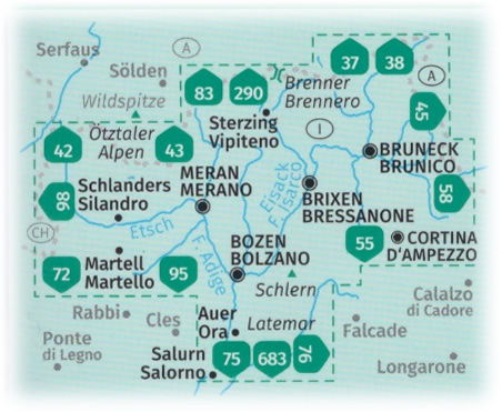 Mappe > Mappe dei sentieri per trekking e mountain bike > Nord Italia, Alpi, Dolomiti, Trentino-Alto Adige > Val Venosta, Merano, Bolzano, Val Gardena
